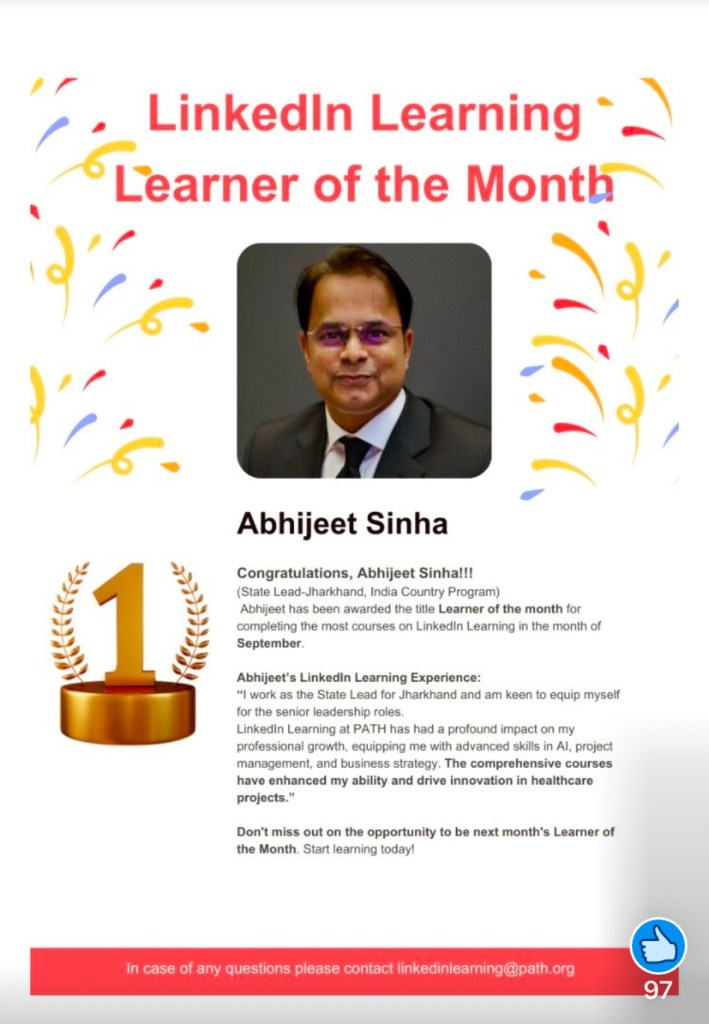 Dr. Abhijeet P. Sinha remains committed to making a difference and looks forward to collaborating with purpose-driven organisations to amplify impact and scale innovative solutions.