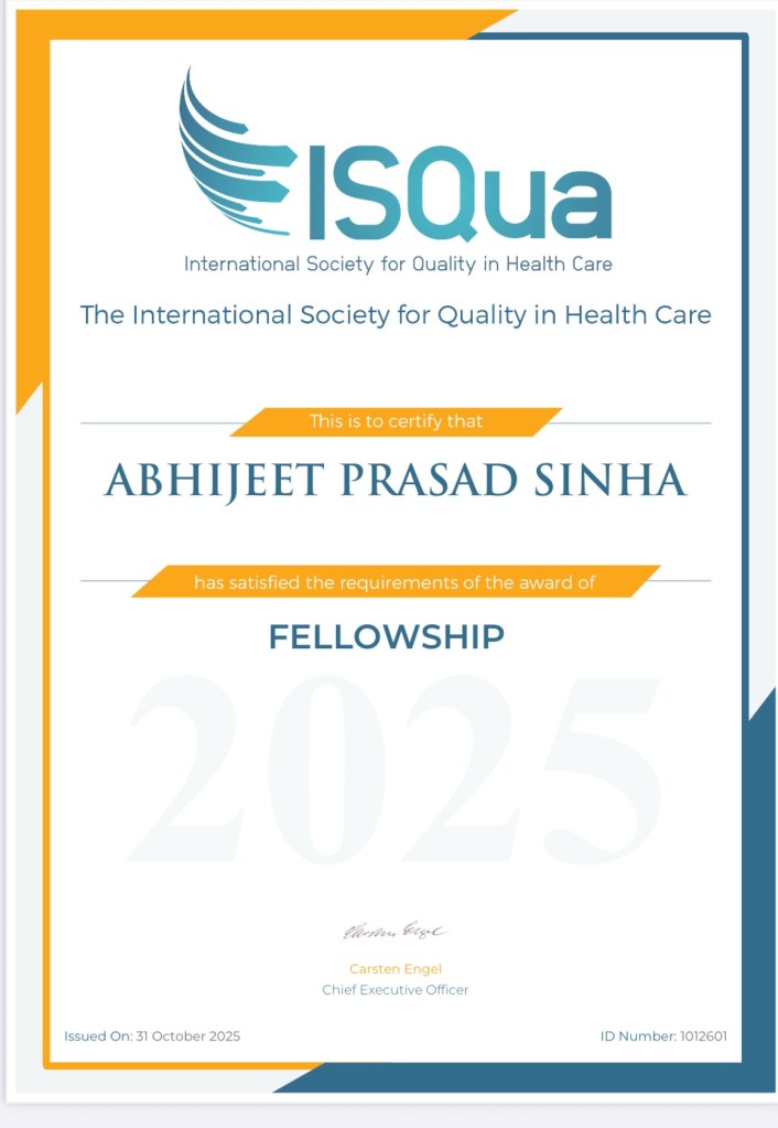 Dr Abhijeet P Sinha awarded ISQua Global Fellowship